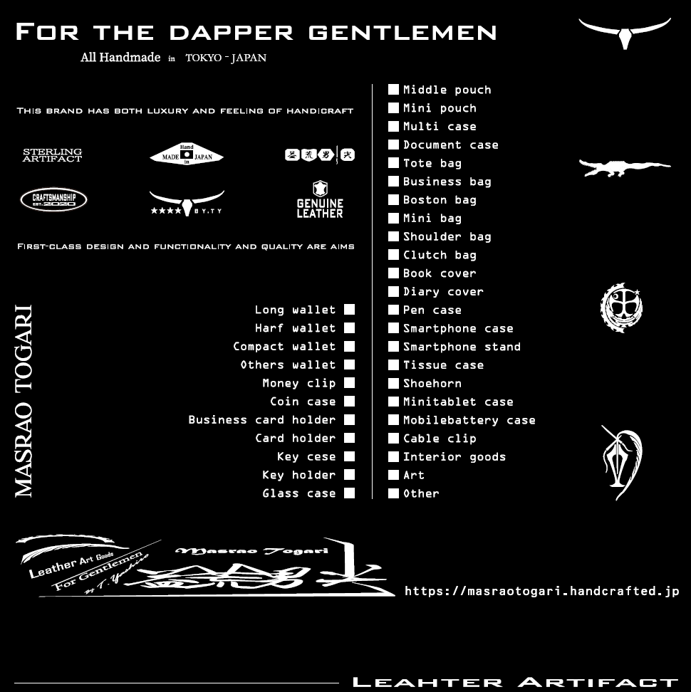 MASRAO TOGARIは、東京発のオールハンドメイド・レザーブランド。