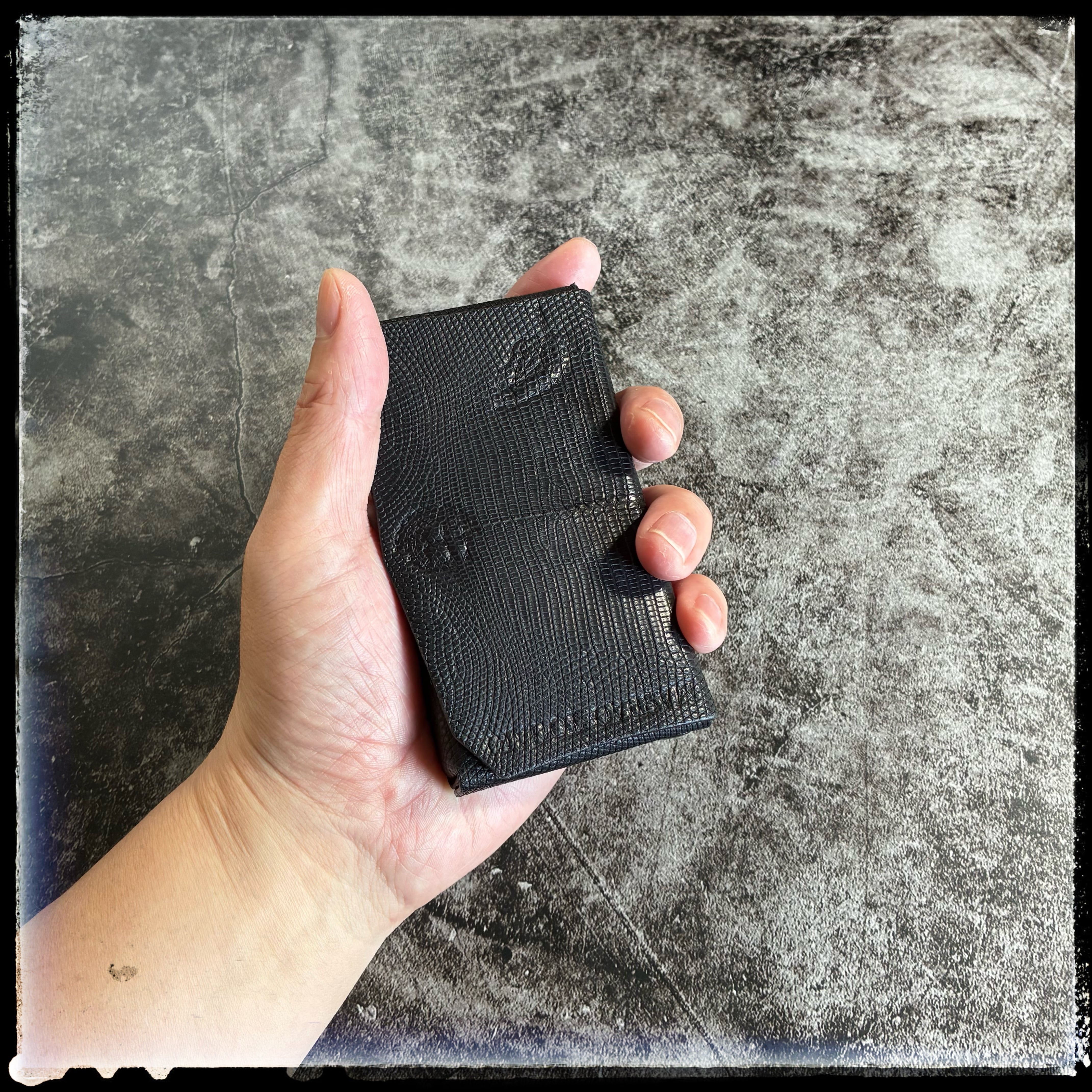 外装には、背割りのリングトカゲ(リザード)ブラックマットを使用。