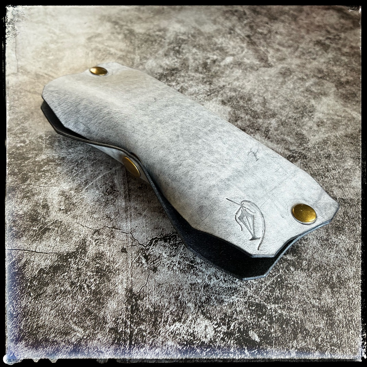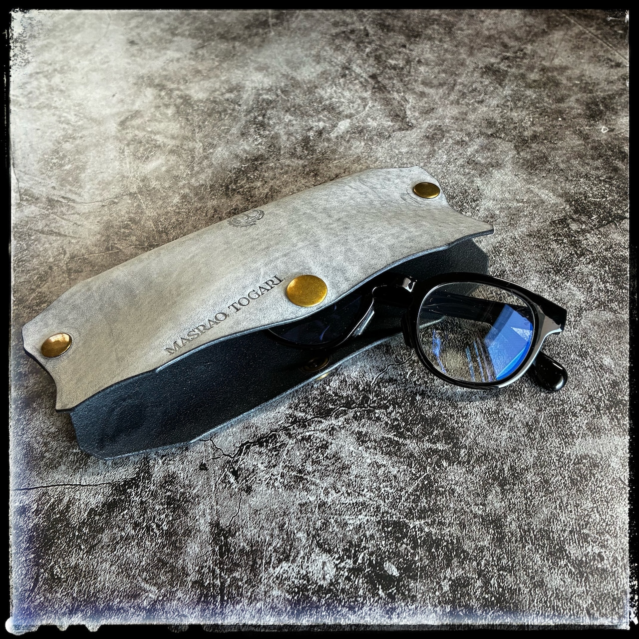 ※ブラック革の上からホワイトワックスでコートしているため、初期は白味が強く、使用とともにワックスが取れてブラックに近づいていきます。