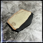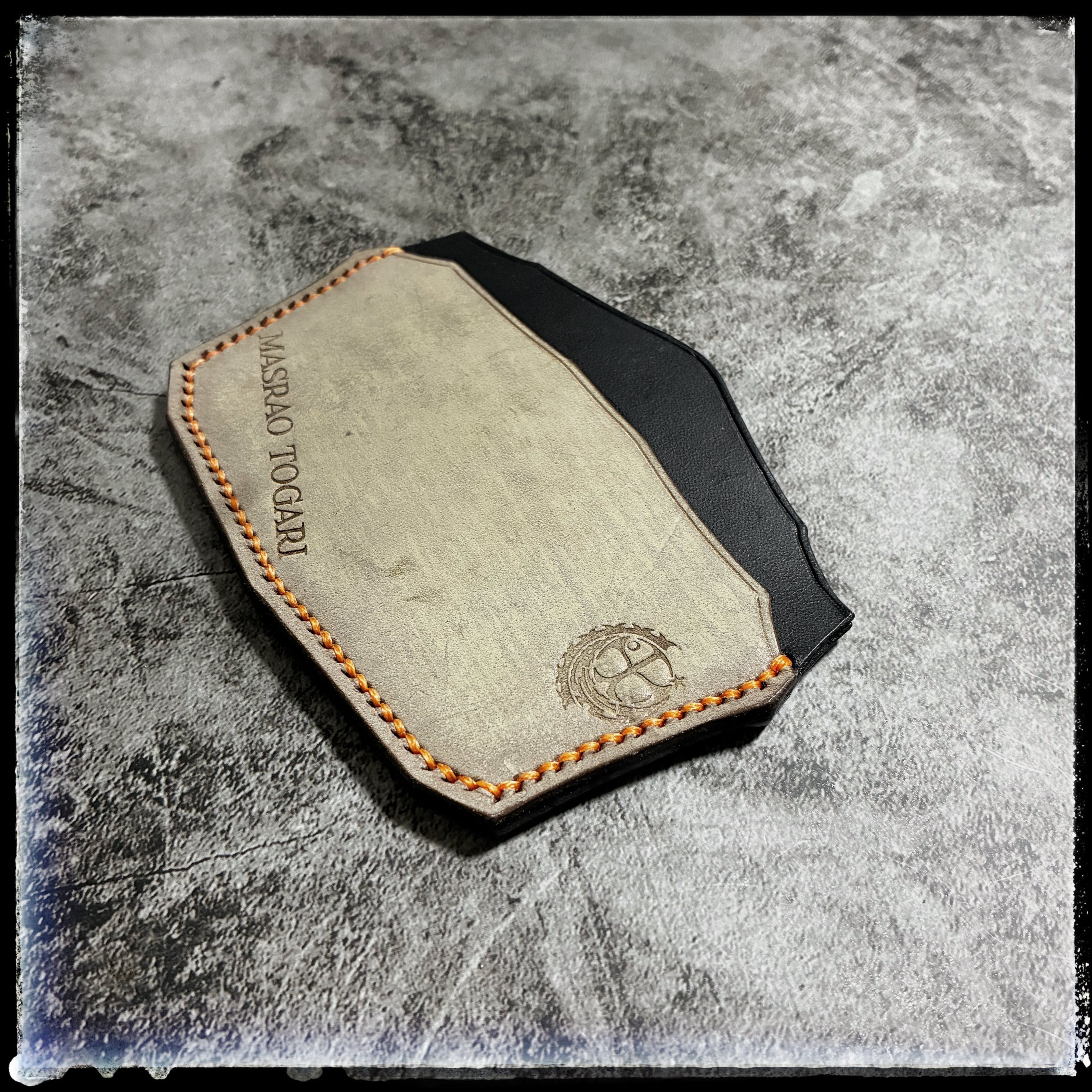 当ブランドの独特のフォルムを落とし込んだカードだけを納めるケース。オレンジのステッチがアクセントとして非常に効いています。