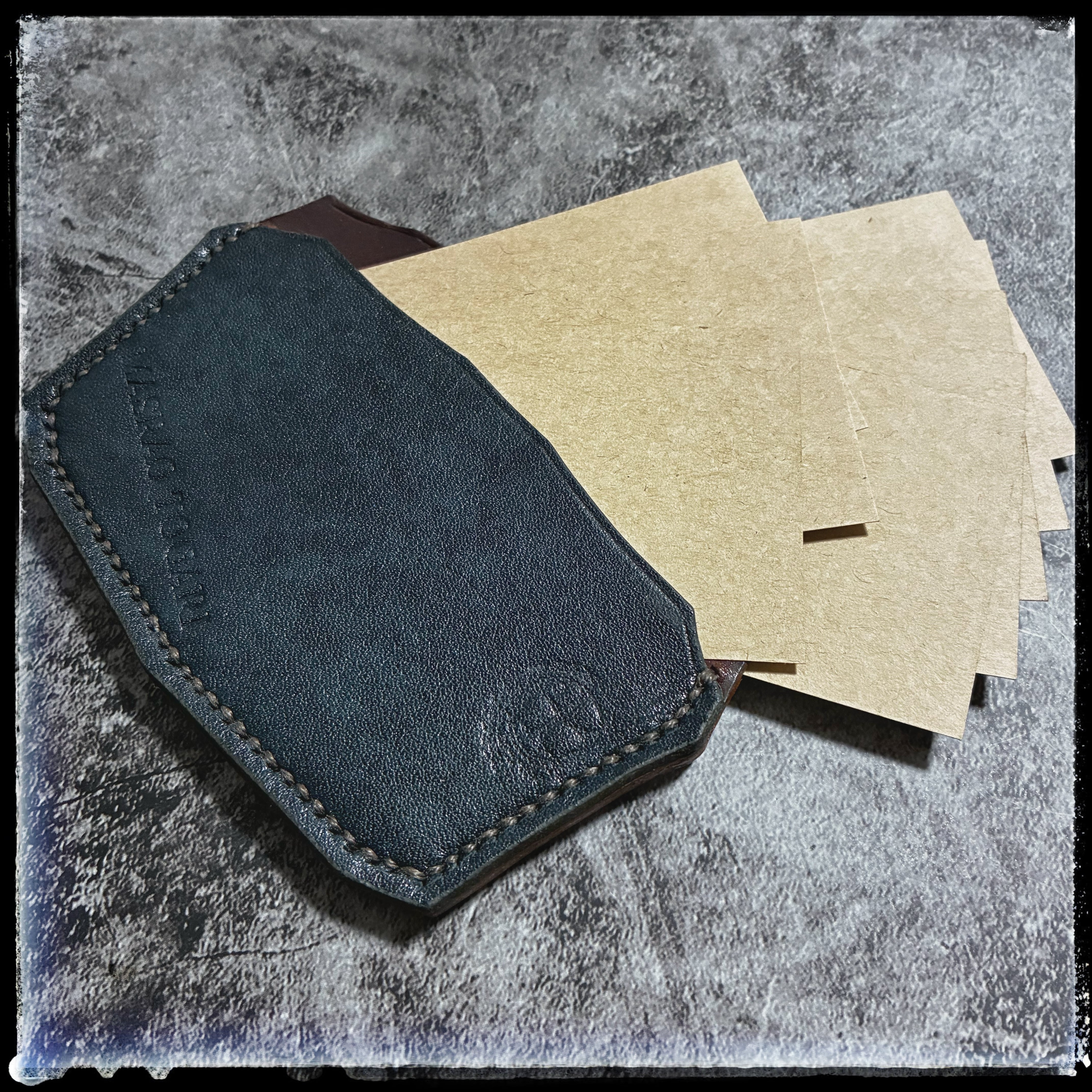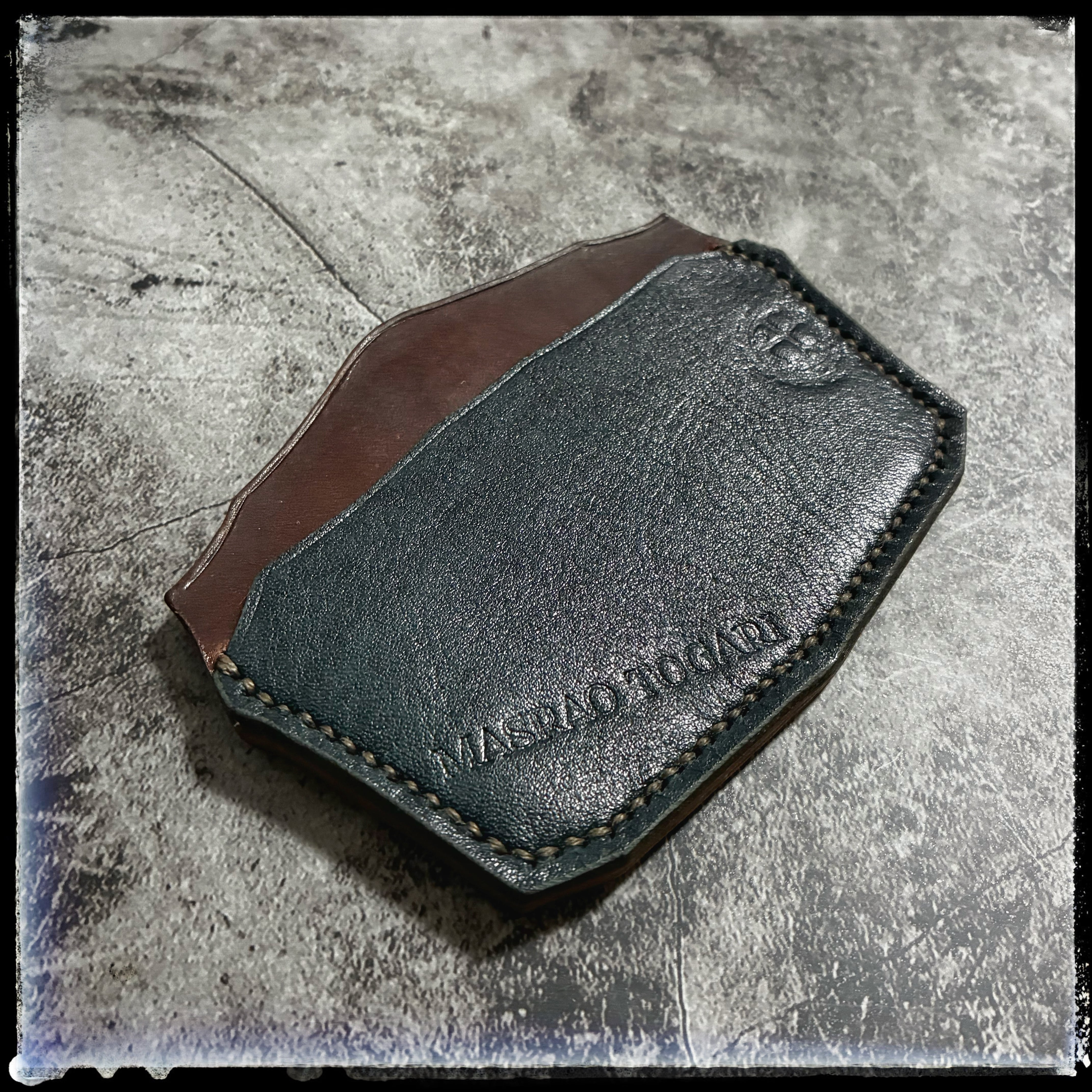 コンビ鞣しのため植物タンニン鞣し革のような経年変化を愉しむ革ではありませんが、タンポナートによって味わいのある表情豊かな革に仕上がっています。
