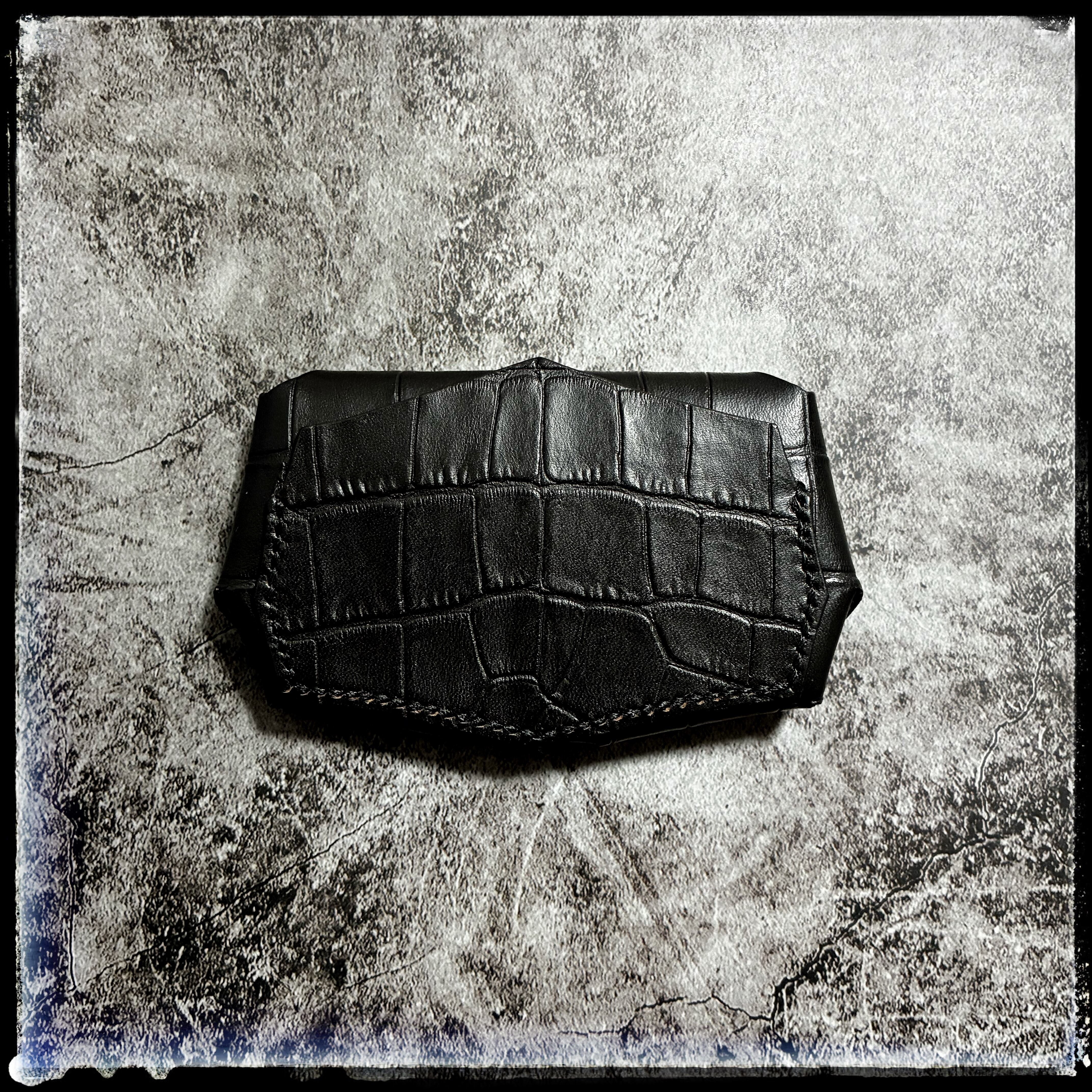 レザー : 型押しクロコダイル(牛革) ※ブラウンシュリンクレザーを内張り