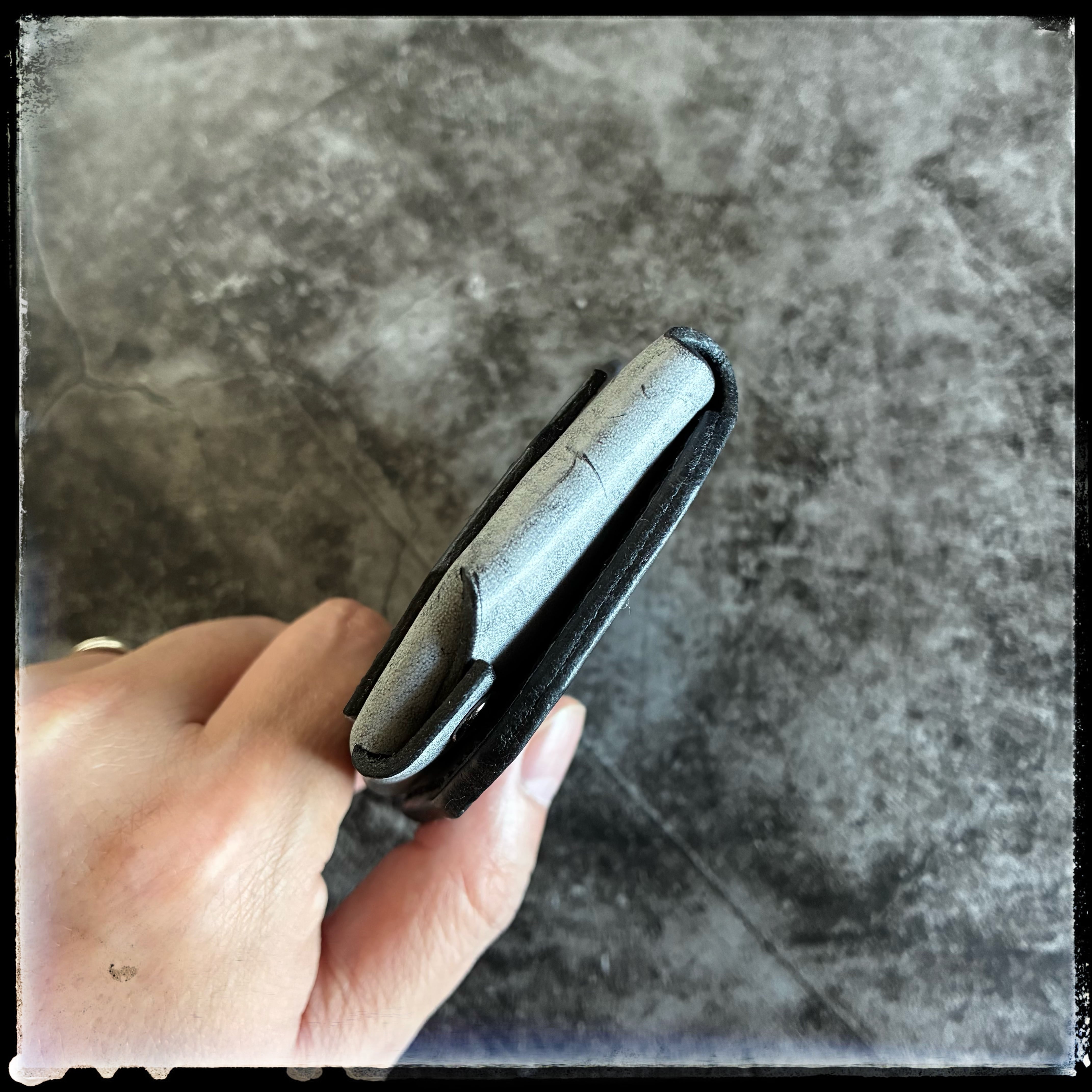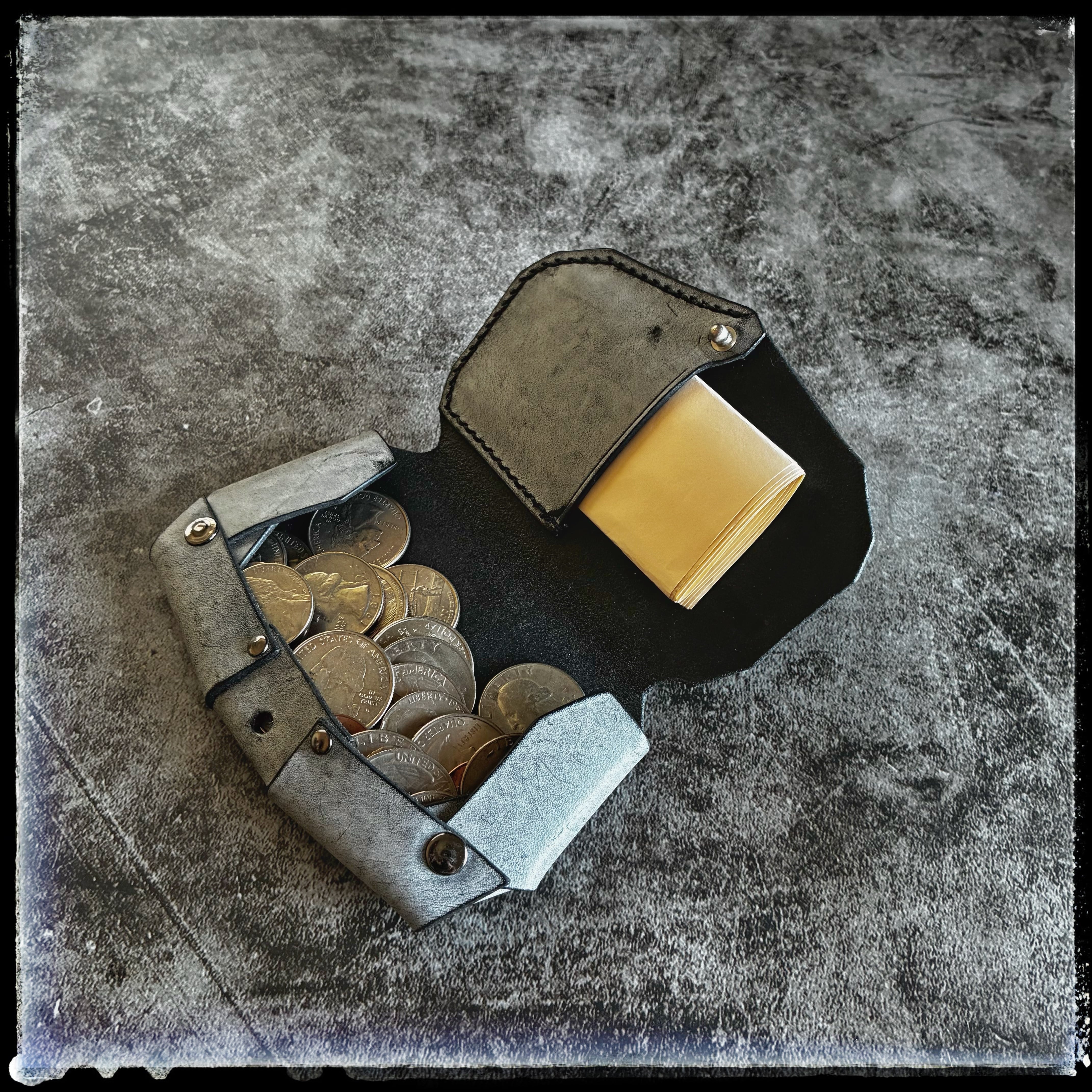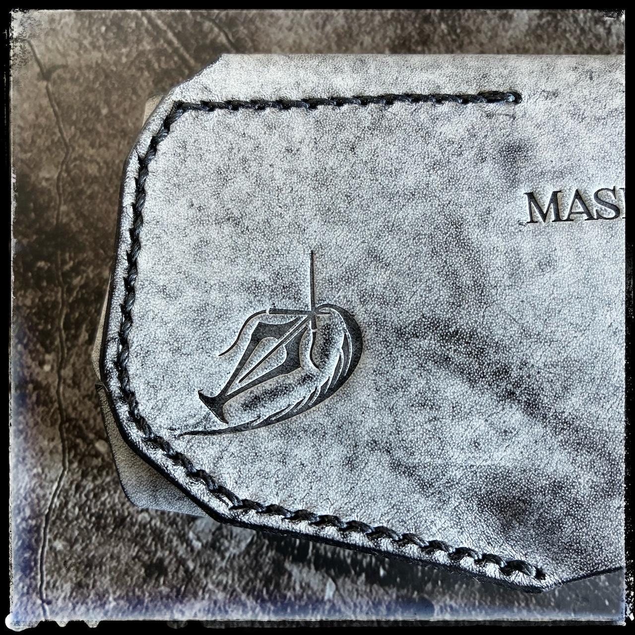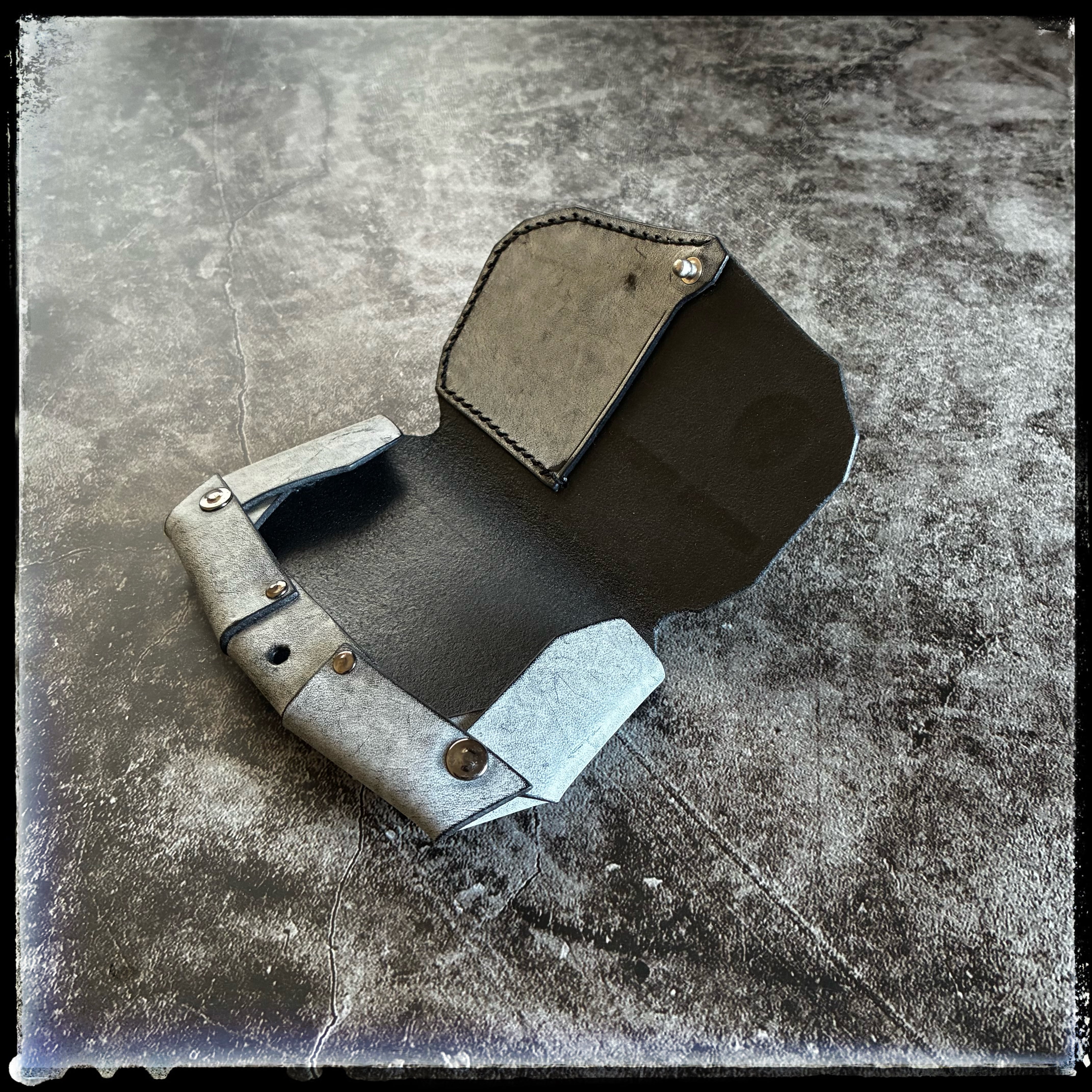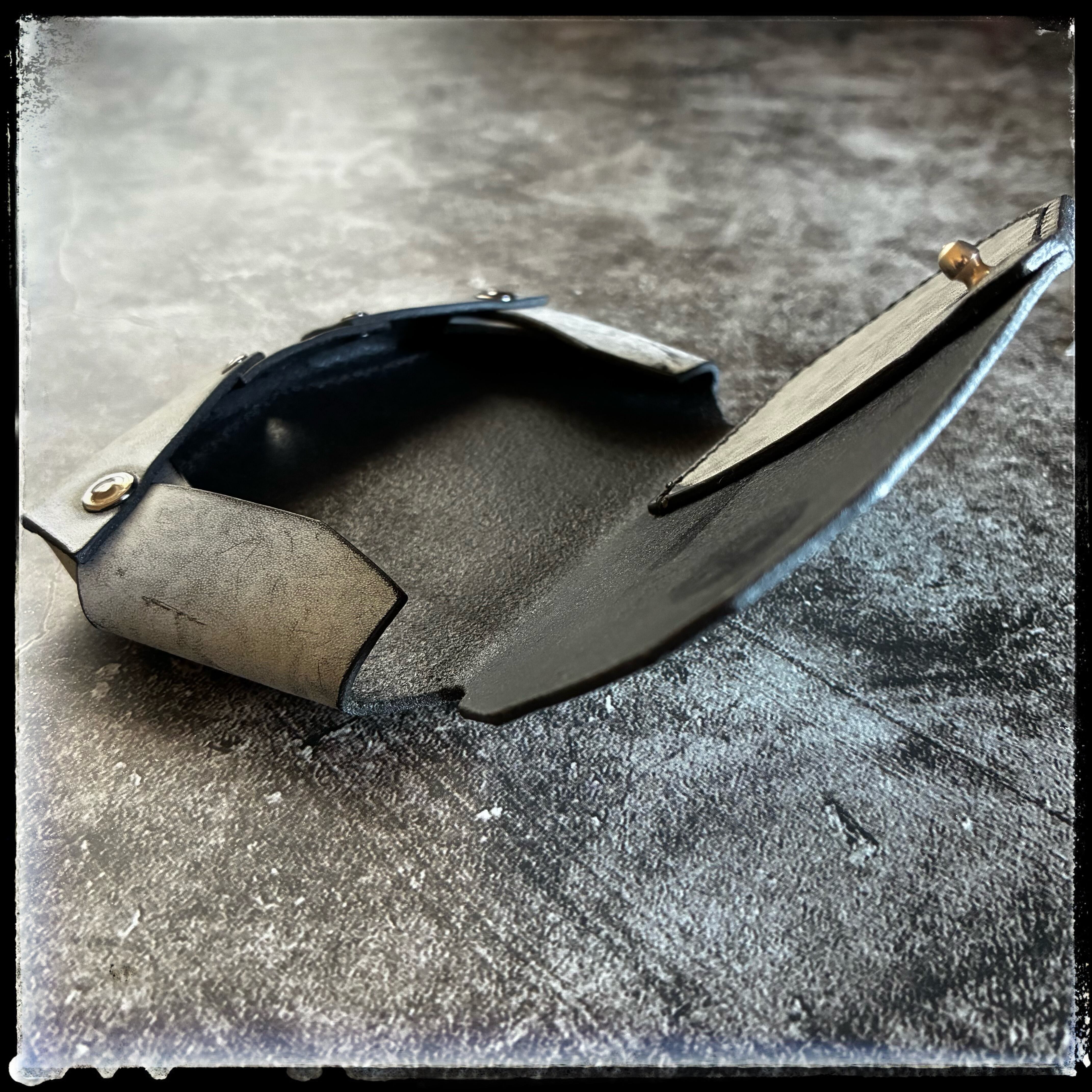 ※ブラック革の上からホワイトワックスでコートしているため、初期は白味が強く、使用によりワックスが取れてブラックへと近づいていきます。