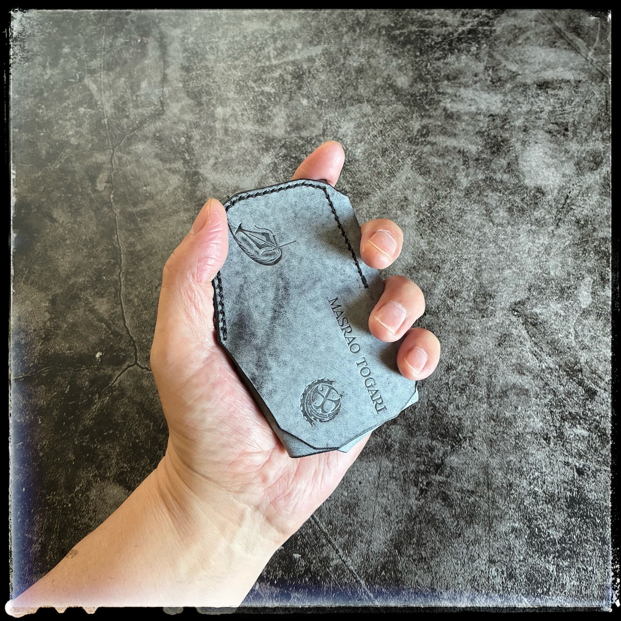 “持ち歩く革の塊”という思想で設計しています。